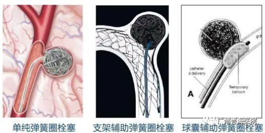 医生需要综合考虑病变部位解剖、动脉瘤大小及形状等多种临床因素进行选择,分为单纯弹簧圈栓塞、支架辅助弹簧圈栓塞、球囊辅助弹簧圈栓塞。